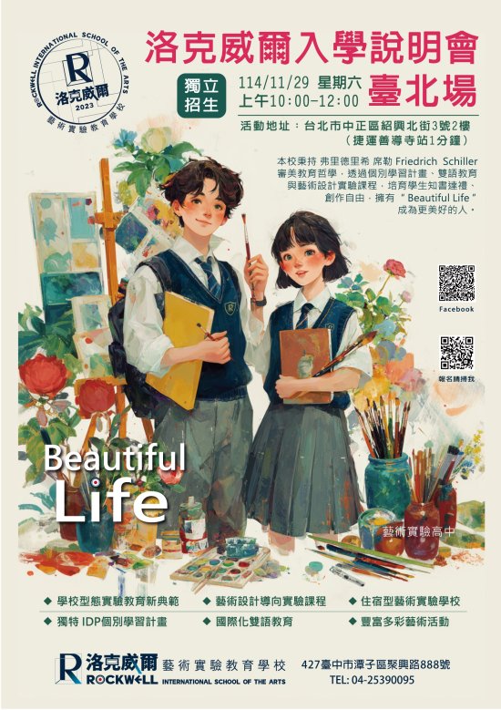 | (三) | 對象:有志就讀洛克威爾藝術實驗教育學校之國中學生及家長。 |