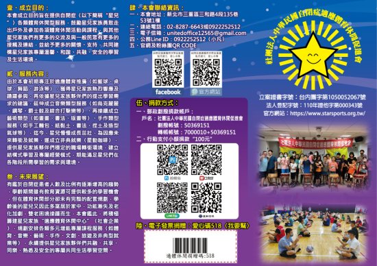 (二) | 戶名:社團法人中華民國自閉症適應體育休閒促進會 |