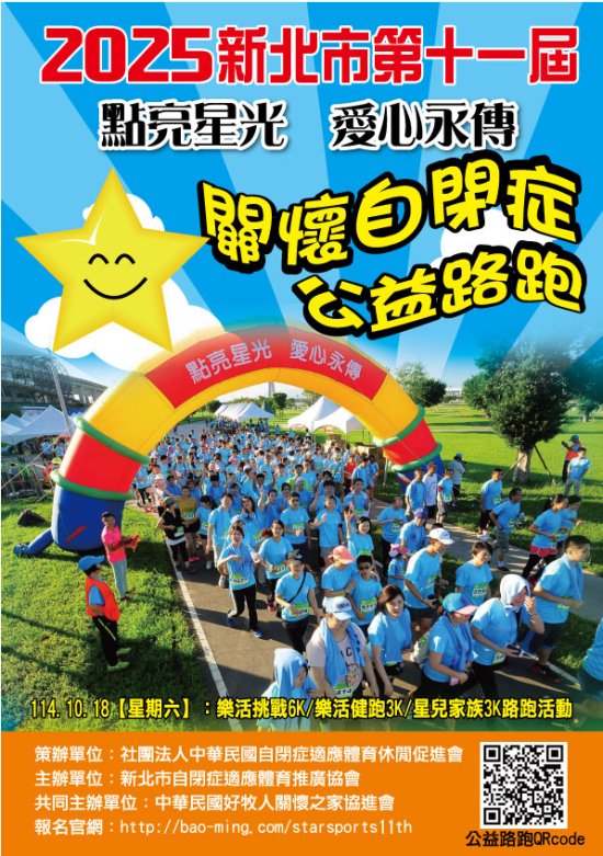 2、 | 星兒親子組: 390 元/人〈保證金〉,當天攜身心障礙手冊現場辦理退費〈贈送星兒路跑記念衣及毛巾〉。 |