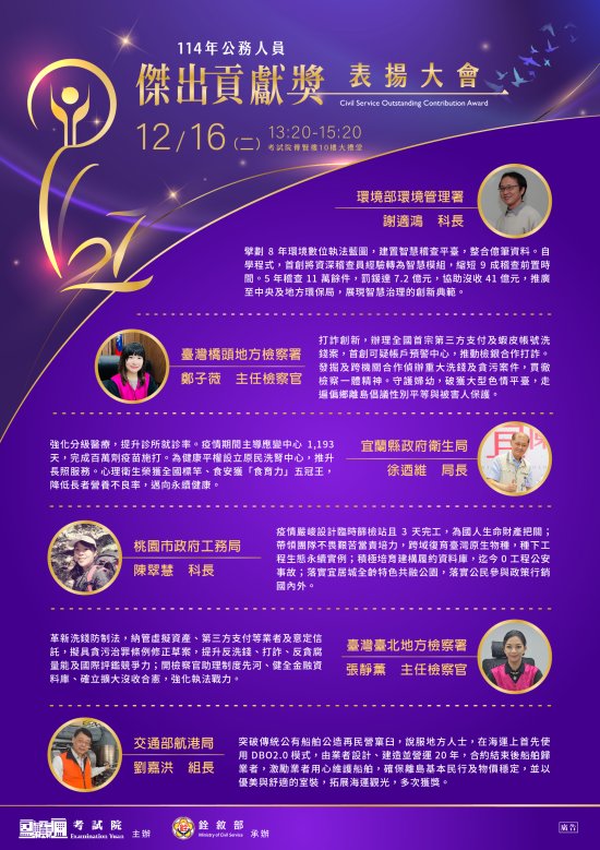 | 說明: | 依銓敘部 114 年 11 月 21 日部管二字第 1145899885 號書函辦理 ,並檢附原書函影本(含附件) 1 份。 |